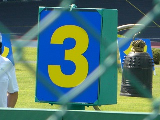 [イエローライン(いえろーらいん)]…内圏線から3メートル外側に引かれている黄色いラインのこと。競技規則第16条にイエローライン踏み切りの禁止についての条項がある。